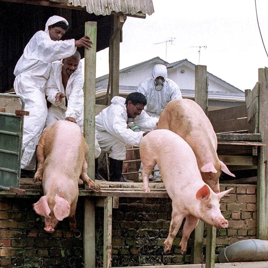 其实,这并不是尼帕病毒第一次登上人类舞台。1999 年,它首次在马来半岛的养猪场被确认。果蝠先将病毒传播给猪,猪作为中间宿主放大了病毒规模,随后与感染猪密切接触的人群大量染病。